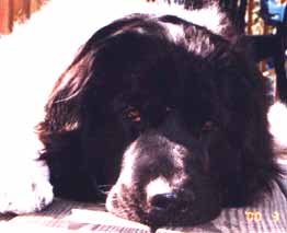 girl. A majestic Landseer Newfoundland, with a beautiful loving